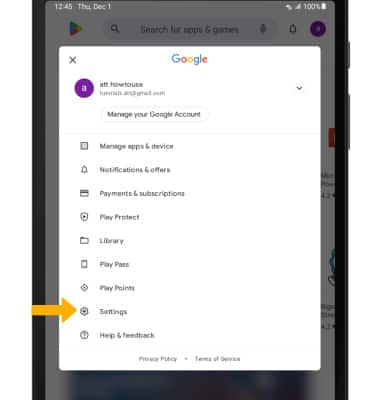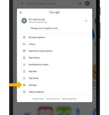 Play Store app > Account icon > scroll to and select Settings.