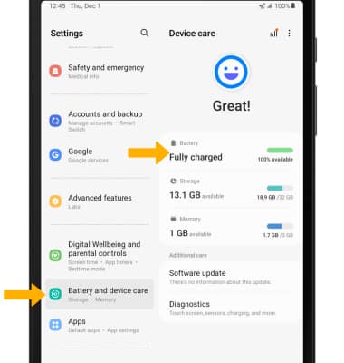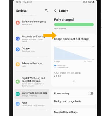 2. Scroll to and select Battery and device care > Battery.