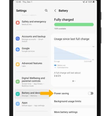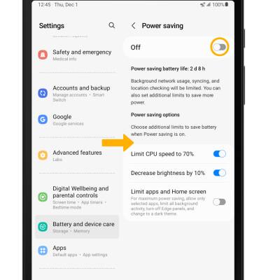 1. From the Battery screen, select Power saving.
