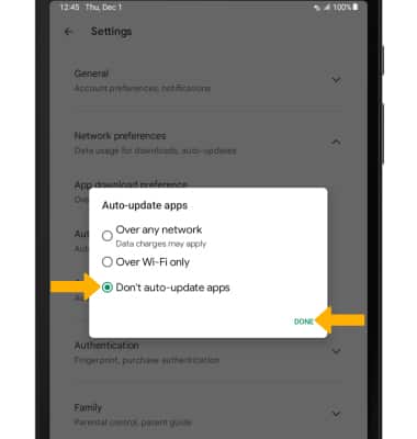 4. Select Don't auto-update apps, then select DONE.