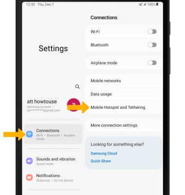2. Select Connections, then select Mobile Hotspot and Tethering.