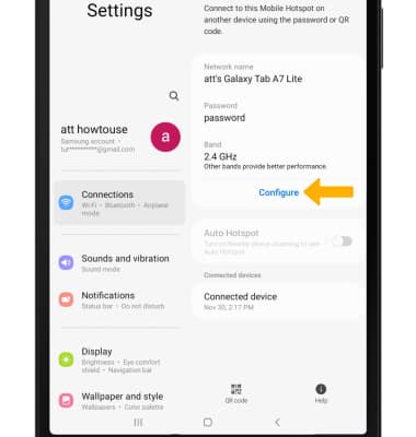Note: The Mobile Hotspot must be turned off in order to be configured.