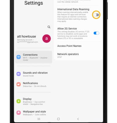 Note: Data roaming is off by default. Enabling Data roaming will allow the device to attach to foreign wireless network signals when available. International roaming charges will apply. This setting does not apply to voice access, which requires additional provisioning for usage on international networks. To learn more, visit the AT&T International website.