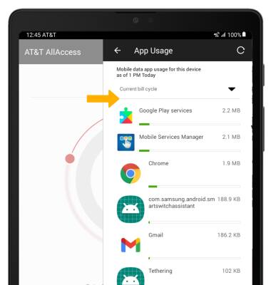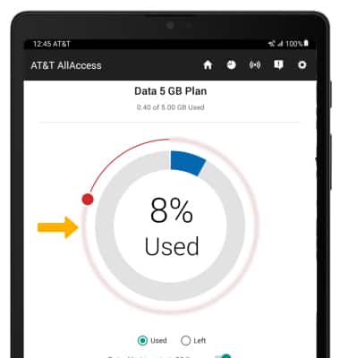 1. Data usage information for this tablet and Mobile Share Plan will be displayed in the center of the screen.