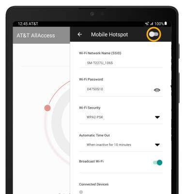 TURN MOBILE HOTSPOT ON/OFF: Select the