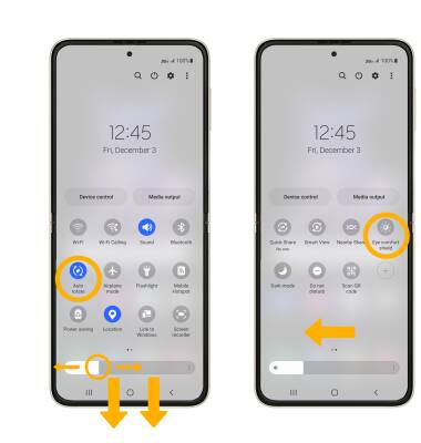 • EYE COMFORT SHIELD: Swipe left then select the Eye comfort shield icon. Eye comfort shield will use less blue light to be easier on your eyes. You can set a schedule for the Eye comfort shield in its settings screen.