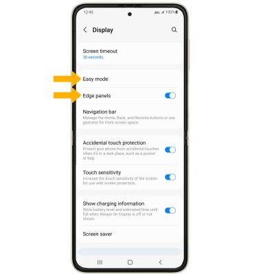 • EDGE SCREEN: Select Edge panels, then edit Edge screen settings as desired.