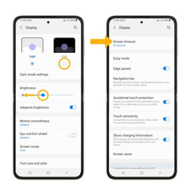 • DECREASE SCREEN TIMEOUT: Scroll to and select Screen timeout, then select the desired option.