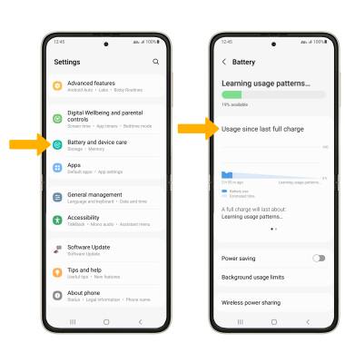 2. Scroll to and select Battery and device care > Battery > battery usage information will be displayed.