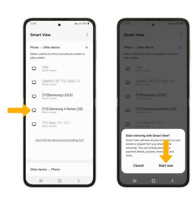 Note: Alternately, you can turn off Screen projecting through Quick Settings. Swipe down from the Notification bar with two fingers > swipe left > select Smart View. The device will disconnect.