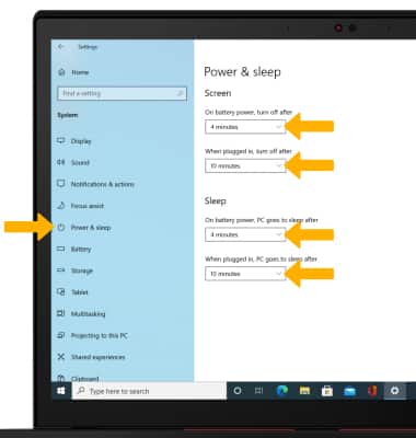 2. Select the Power & sleep tab then select the drop-down icon next to the desired Screen or Sleep setting.