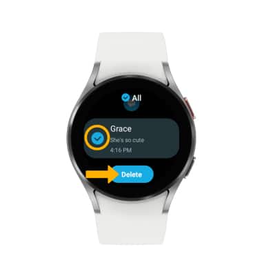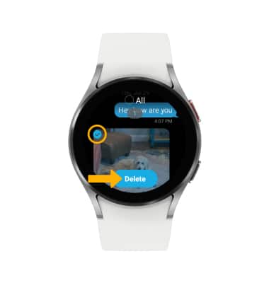 DELETE MESSAGE THREAD: From the Messages screen, select the desired message thread, then select Delete.
