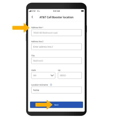 3. Select Set up a Cell Booster, then enter your AT&T Cell Booster location details and select Next.