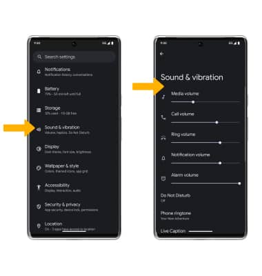 2. Scroll to and select Sound & vibration, then edit sound settings as desired.