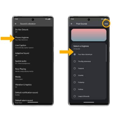 From the Sound & vibration screen, select Phone ringtone > navigate to and select the desired ringtone > select SAVE when finished.