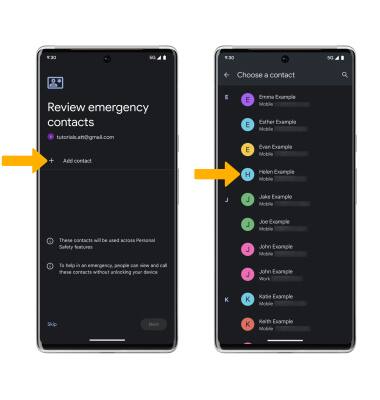 2. Select Add contact, then select the desired Emergency contacts.