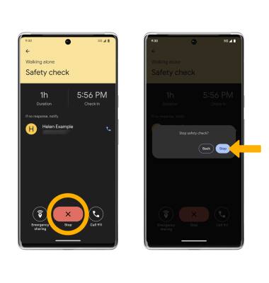 2. To turn off Emergency sharing, select Stop. Select Stop sharing to confirm. Confirm that you are safe by adding a reason to tell your emergency contact why you have stopped sharing.