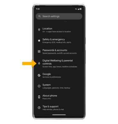 2. Scroll to and select Digital Wellbeing & parental controls. ![]()