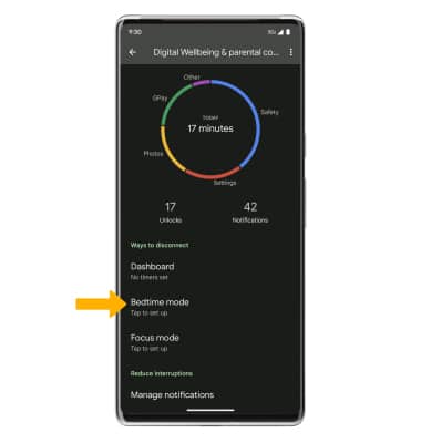 1. From the Digital Wellbeing & parental controls screen, select Bedtime mode.