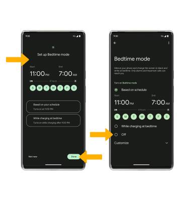 2. Select the desired option or set the desired schedule. When finished, select Done. To turn Bedtime mode off, select Off. ![]()