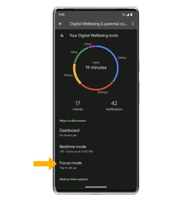1. From the Digital Wellbeing & parental controls page, scroll to and select Focus mode. ![]()