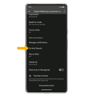 1. From the Digital Wellbeing & parental controls screen, scroll to and select Do Not Disturb. ![]()