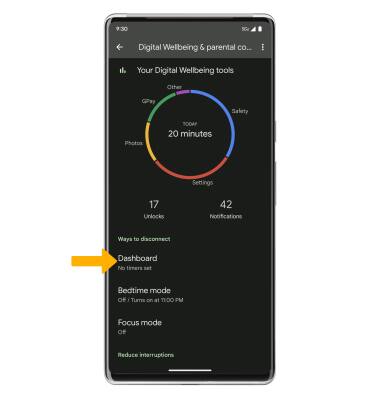 1. From the Digital Wellbeing & parental controls screen, select Dashboard. ![]()