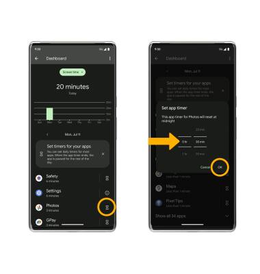 2. Select the Timer icon next to the desired app. Select the desired option, then select OK.