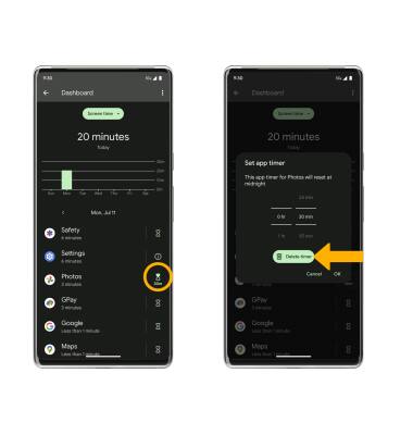 3. To delete a timer, select the Timer icon next to the desired app, then select Delete timer. ![]()