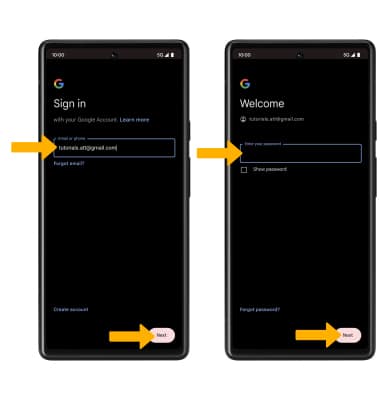 Note: If you do not have an account, select Create account and follow the prompts, or visit accounts.google.com/signup. If you can't remember your password, select Forgot password? and follow the prompts.![]()