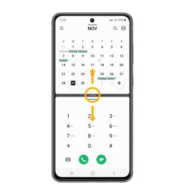 The app with the blue line is the active app. Select and drag the divider in the middle of the screen down to the bottom or up to the top of the screen, depending on which app you want to open completely.