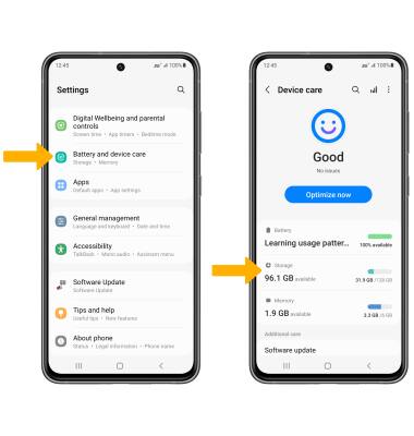 2. Scroll to and select Battery and device care, then select Storage.