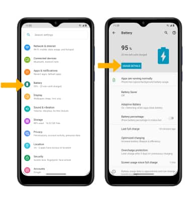 2. Select Battery, then select Battery Usage. Battery Usage information will be displayed.