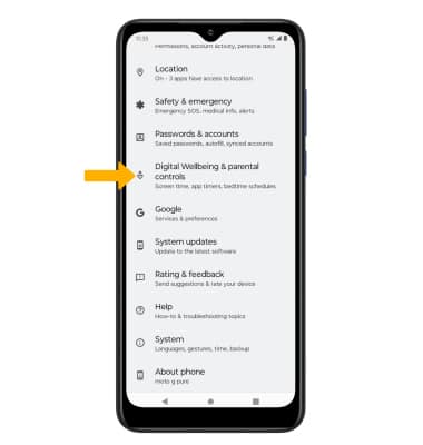 Settings icon. Scroll to and select Digital Wellbeing & parental controls.