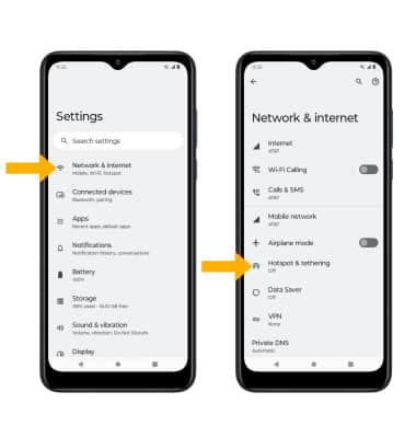 2. Select Network & internet, then select Hotspot & tethering.