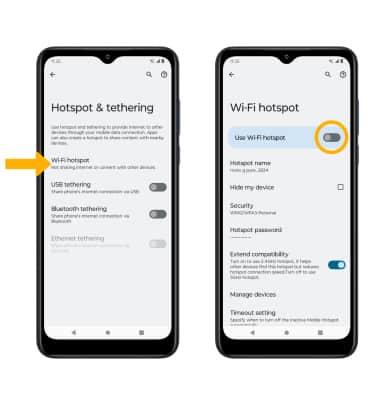 3. Select Wi-Fi hotspot, then select the Use Wi-Fi hotspot switch.