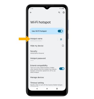 VIEW MOBILE HOTSPOT NETWORK NAME: The Mobile Hotspot Network name will be displayed on the Mobile Hotspot screen.