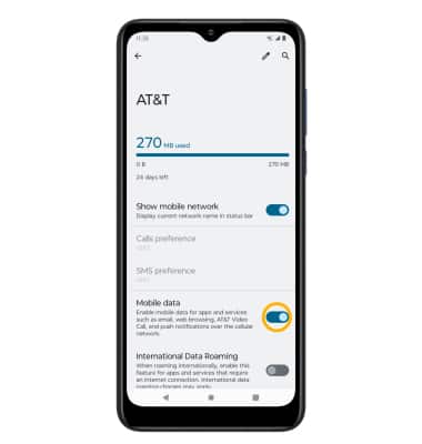 Note: Mobile data is on by default. Turning off mobile data will not allow any data to be transferred over the wireless network. Wi-Fi access, voice function, and standard text messaging are still allowed. You can also turn data on or off by device using your own myAT&T account.