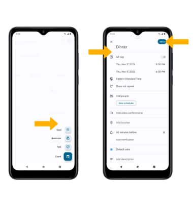Add icon, then select the desired event type. Edit the information as desired, then select Save.