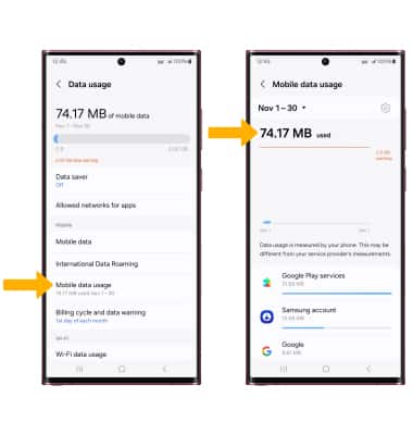 3. Select Mobile data usage. Mobile data usage will be displayed.