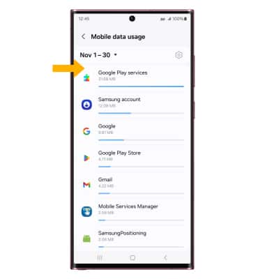 From the Mobile data usage screen, scroll to view data usage broken down by application.