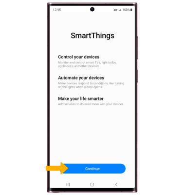 Note: To access Samsung SmartThings, you must first be signed into your Samsung account. If you have not already signed into your Samsung account, select Sign in upon initial access of Samsung SmartThings. Enter your account information, then review the Terms and Conditions and Privacy Policy as desired.