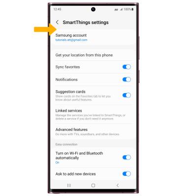 1. From the SmartThings screen, select the menu Menu tab then select the settings Settings icon