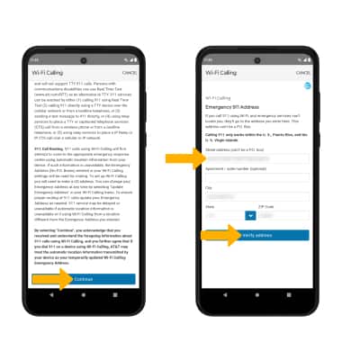 4. Review the Important Information prompt, then scroll to and select Continue. Enter your emergency address, then select Verify address.
