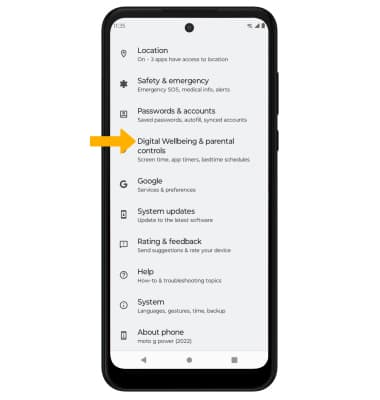 Settings icon. Scroll to and select Digital Wellbeing & parental controls.