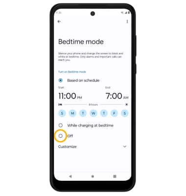 1. Enabling Bedtime mode will automatically darken your screen and set your phone to Do Not Disturb during sleeping hours. From the home screen, swipe down from the Notification bar with two fingers, then select the