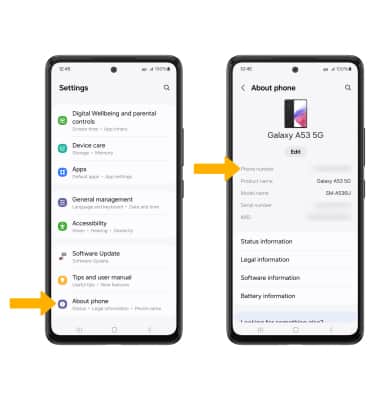 2. Scroll to and select About phone. The device's Phone number will be displayed.