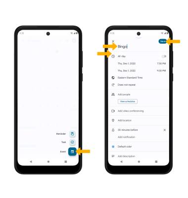 Add icon, then select the desired event type. Edit the information as desired, then select Save.