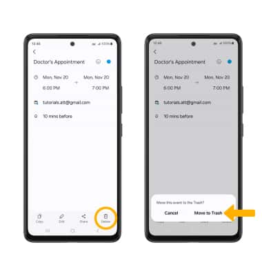From the desired event, select Delete, then select Move to Trash to confirm.