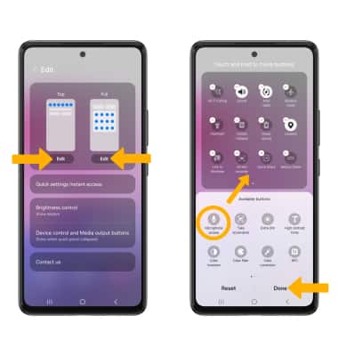 Edit icon then select Edit under the desired Quick Settings layout. Select and drag the desired icon to the desired location. Select Done to save.